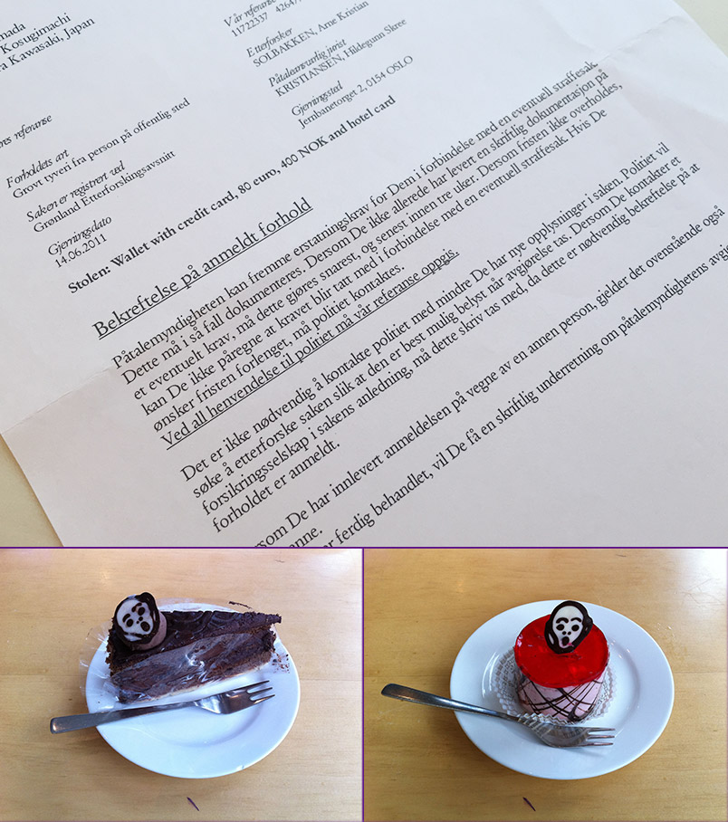 写真は帰国後自宅に送られてきた盗難証明書。ノルウェー語で読めないが、今となっては大切な宝物である。